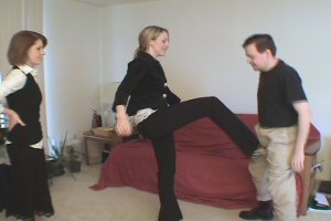 | Crystal Shows Jordyn How to Bust Part Two | | Crystal starts out by landing some hard front kicks to his little ballsies. Then she makes him lay on the ground to demonstrate some stomping and kicking from there. After Crystal makes her man kiss her shoes for the good job they did she sits down and lets Jordyn practice her new techniques. Crystal tells her to be sure to kick him hard. Jordyn does exactly what she says. Her hot black pointy pumps nail his nads and send him to the ground in one kick. Then after a brief rest she makes him kneel and she pummels his groin with some rapid fire kicks to his balls. To finish him off Jordyn kicks his legs apart one by one as he is lying on the ground. Then she grinds the bottom of her pump into his balls. That has got to hurt! | Format: WMV Size: 58 MB Resolution: 720 x 480 Buy Now Download