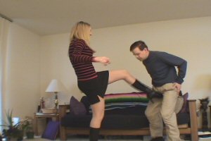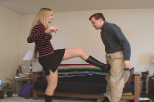 | Crystal – I want a Ballbusting Christmas Present Part One | | Crystal and her man are sitting on the couch talking about what to get each other for Christmas. Her man suggests a ballbusting Christmas gift. She smiles and looks down at his crotch and says "Well get up... I can give your present right now!" She starts out slow to make his present last. Then all of a sudden she drops him to the ground with an extremely hard front kick. She shows some concern to his busted balls, but it does not last long. Even when he is on the ground she cannot stop kicking or grinding his balls with her hot black shoes. She ends this part some nice back kicks into his tender balls. Then she tells him that they can do this every night until Christmas – if he can take it! | Format: WMV Size: 50 MB Resolution: 720 x 480 Buy Now Download