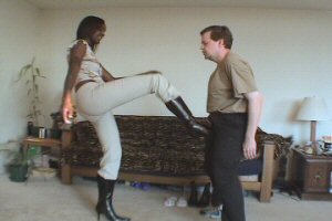 | Sarah the Ballbusting Mistress Dominates her Man Part One | | Sara has become a little more sure of herself in her new found fetish. She is wearing her favorite black boots. They have a large heavy heel that she discovers was designed especially for grinding up balls. She also finds out that they work equally well for kicking! Her boots are very accurate and they always land with a thud into her partner’s family jewels. He sure takes a beating! | Format: WMV Size: 40 MB Resolution: 720 x 480 Buy Now Download